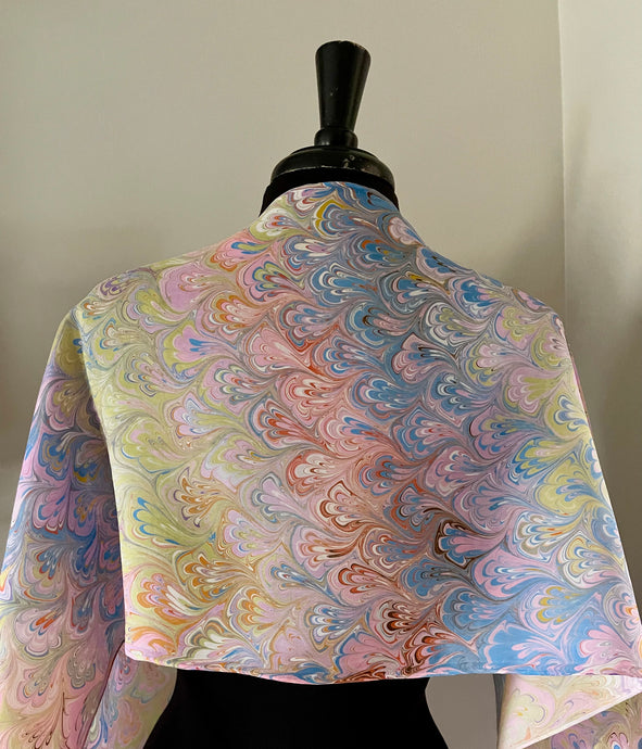 Multidyed bouquet. Water Marbled Habotai Silk 14x72.