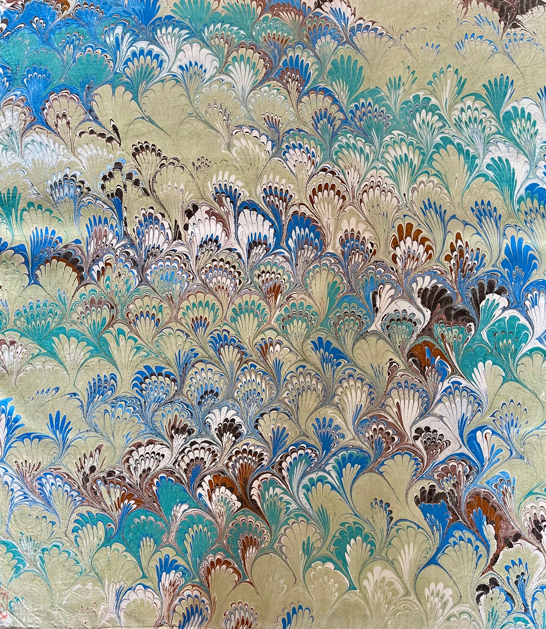 Blue Green brown Bouquet Pattern 21x21 Square Habotai silk. Wear this unique piece in your hair, as a neckerchief, pocket square, or accessorize your dog.