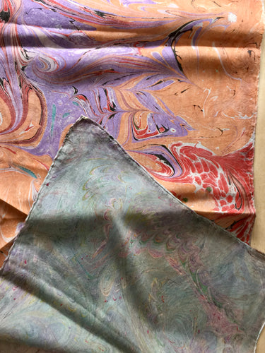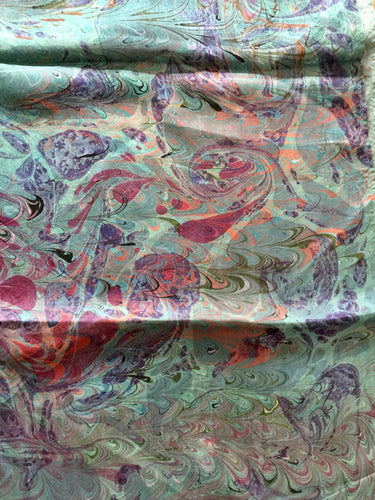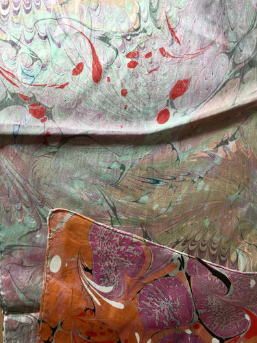 Double-Sided Multicolored Marbled and Swirl-Combed Tokyo Habotai Silk 14x72"