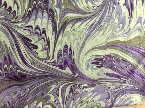 Elegant green and purple combed pattern 14x72” Habotai Silk