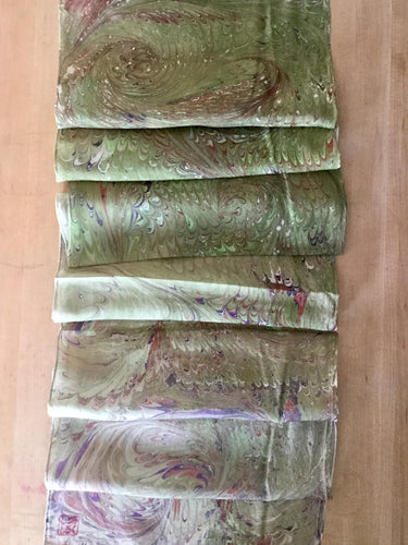 Green Beige Purple Combed Swirl Patterned Habotai Silk 14x72"