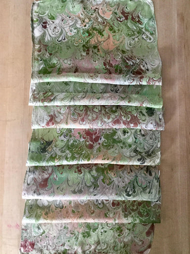 Green Beige Orange Combed Swirl Patterned Habotai Silk 14x72"