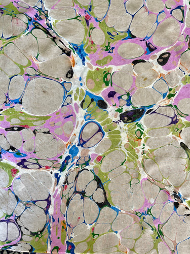 Green, purple, navy and peach random marbled Habotai Silk 14x72"