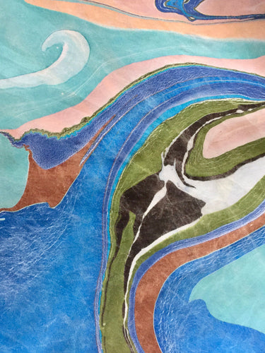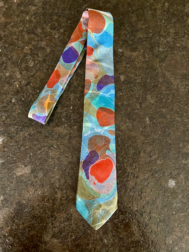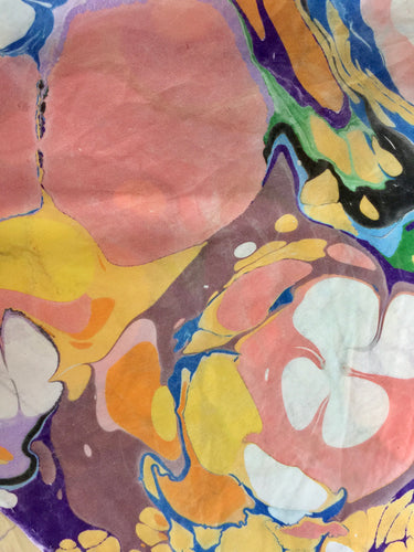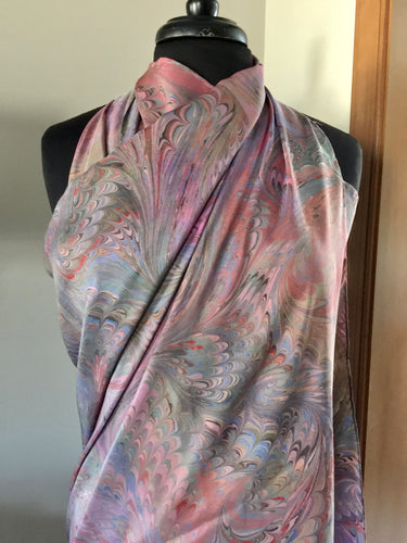 Multicolored Sarong Wrap 44x69 water marbled Habotai Silk combed and swirled pattern.