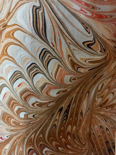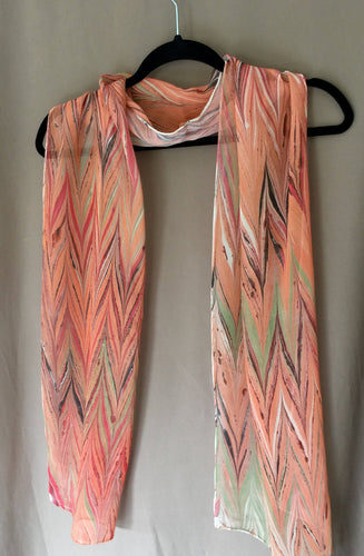 Orange Italian Vein marbled Charmeuse Silk 72x14” bold fun. This beautiful silk makes a unique dresser cover and scarf.