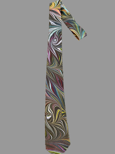 Black Multicolored flame pattern 3” Silk Tie water marbled