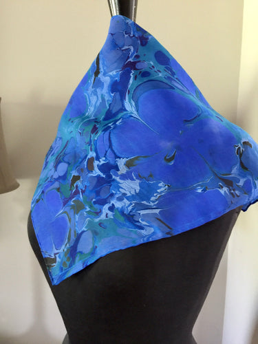 Blue Comb marbled Charmeuse Silk 72x14” bold fun. This beautiful silk makes a unique dresser cover and scarf