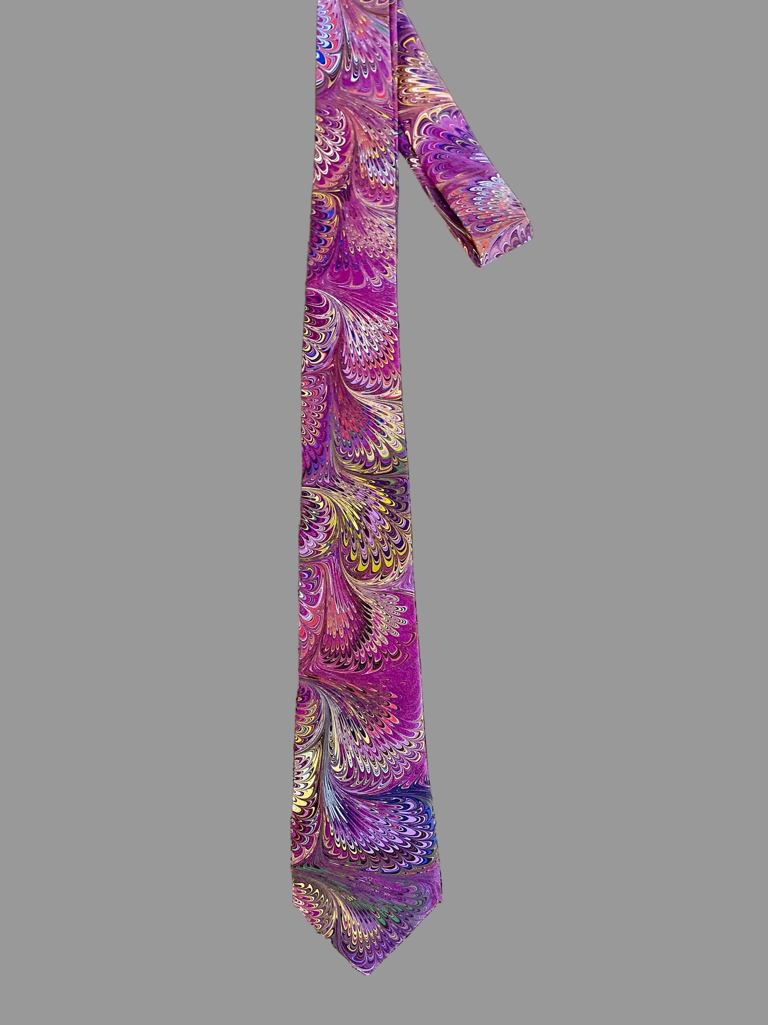 Purple Multicolored bouquet 3” Silk Tie water marbled